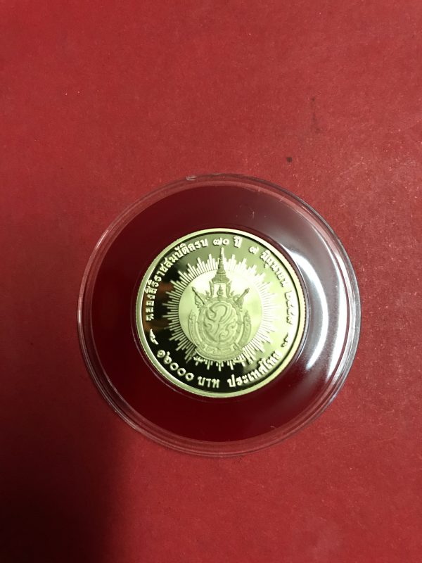 เหรียญกษาปณ์ที่ระลึกเฉลิมพระเกียรติพระบาทสมเด็จพระปรมินทรมหาภูมิพลอดุลยเดช ฉลองสิริราชสมบัติครบ 70 ปี ทองคำขัดเงา หนัก 15 กรัม