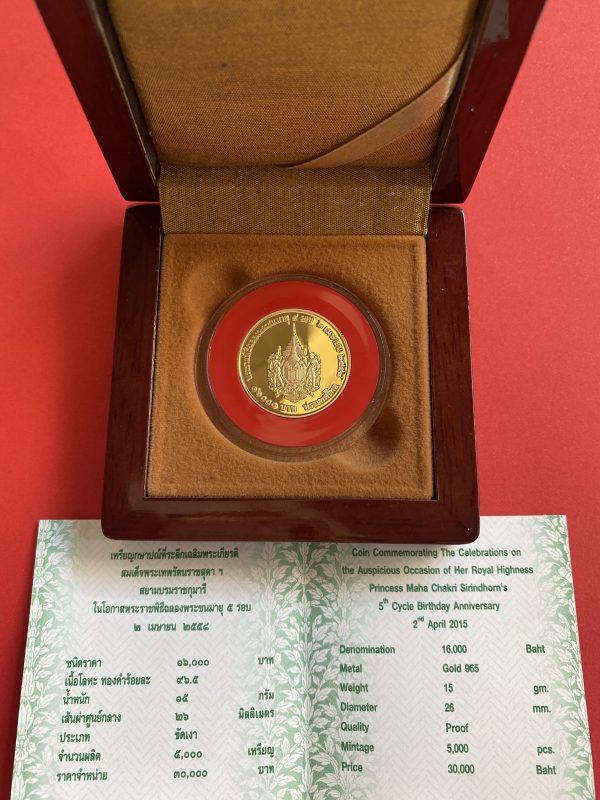 เหรียญกษาปณ์ที่ระลึกเฉลิมพระเกียรติสมเด็จพระเทพรัตนราชสุดา ในโอกาสพระชนมายุครบ 5 รอบทองคำขัดเงา 2 เมษายน 2558