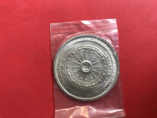 เหรียญกษาปณ์ที่ระลึก 20 ปี พุทธศาสนิกสัมพันธ์ เนื้อเงินปี พ.ศ.2514 หน้าเหรียญ 50 บ. เส้นผ่าศูนย์กลาง 40 มม.ใหญ่มาก
