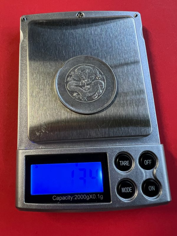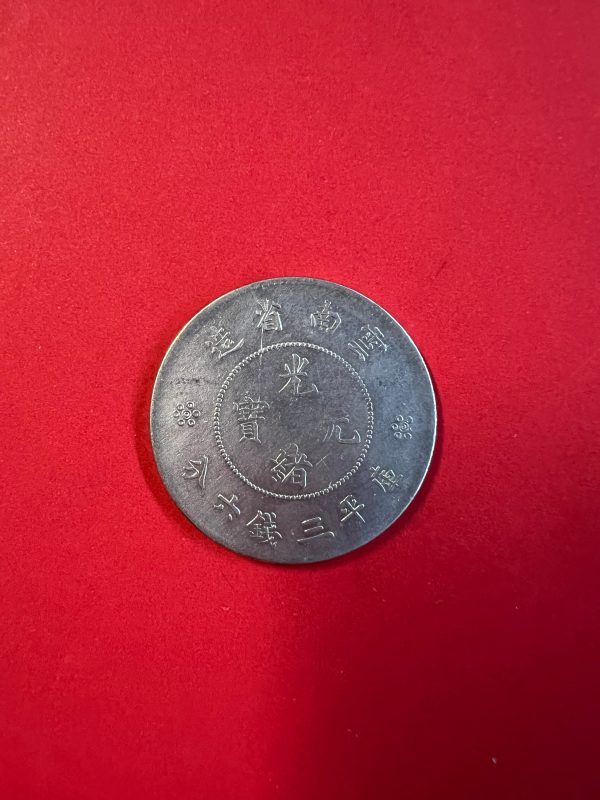 เหรียญกษาปณ์มังกรเนื้อเงิน ปลายสมัยราชวงศ์ชิงมณฑลยูนาน ชนิด 50 เซ็น นำ้หนัก 13.4 g เส้นผ่าศูนย์กลางประมาณ 3.3 เซ็นติเมตรสวย