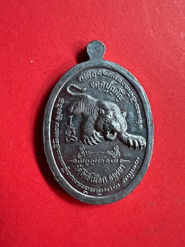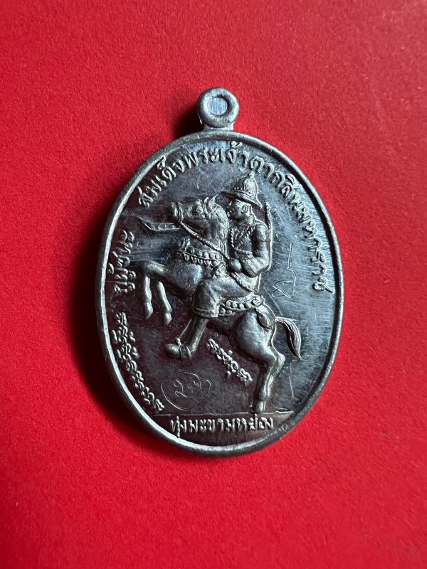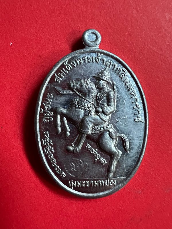 เหรียญกูผู้ชนะ สมเด็จตากสินมหาราช (ทุ่งมะขามหย่อง) รูปไข่เนื้อตะกั่ว ออกวัดโพธิ์เผือก จ. อยุธยา ด้านหน้าลงจารย์