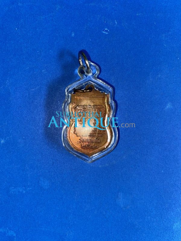 เหรียญขอเบ็ดพระครูนิสิตคุณากร(หลวงพ่อกัน)หลังยันต์ วัดเขาแก้ว ปี2522 เนื้อทองแดงผิวไฟสวยคมเลี่ยมกรอบพลาสติก