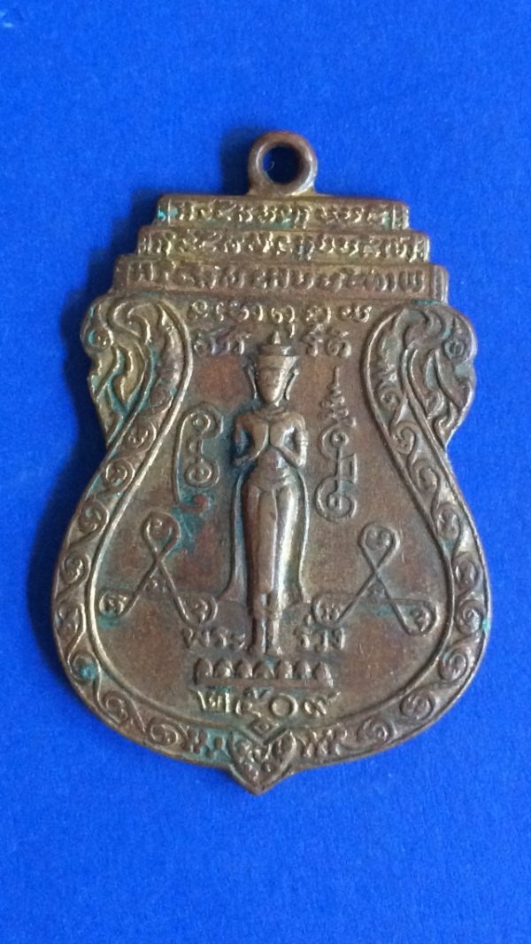เหรียญขอเบ็ดพระร่วงรูปทรงยืนเนื้อทองแดงเก่าเดิมๆคมชัดมาก หลังเป็นพระพุทธ สร้างปี พ.ศ.2509 พบเห็นจำนวนน้อยมาก