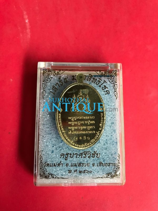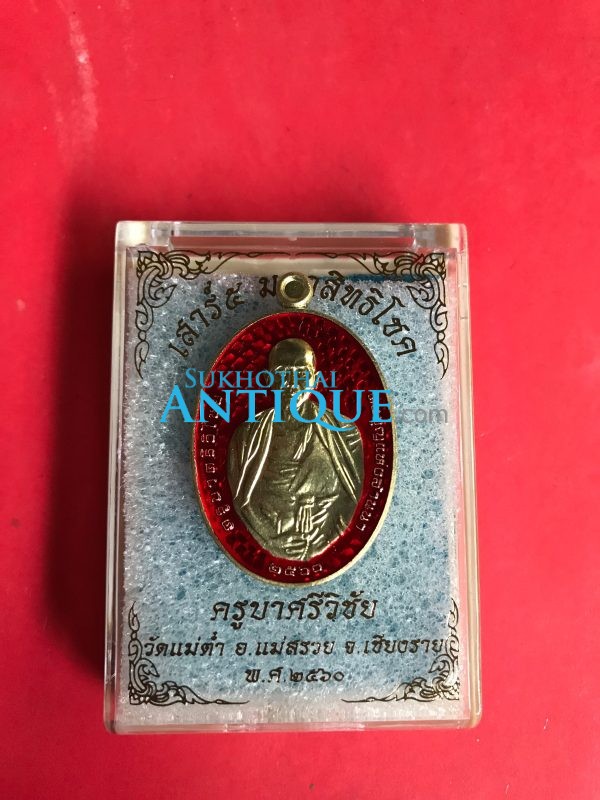 เหรียญครูบาศรีวิชัยรุ่นเสาร์ 5 มหาสิทธิโชค เนื้อทองระฆังลงยาแดง วัดแม่ตํ๋า อ.แม่สรวย จ.เชียงราย พ.ศ.2560