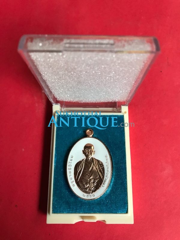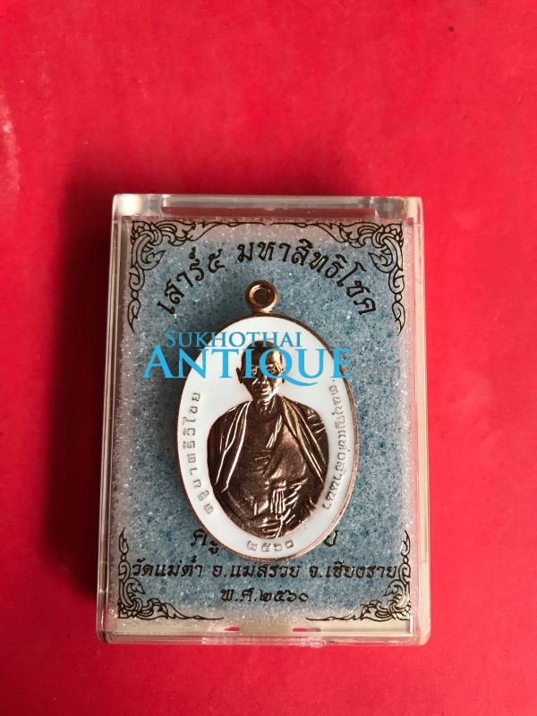 เหรียญครูบาศรีวิชัยรุ่นเสาร์ 5 มหาสิทธิโชคเนื้อทองแดงผิวไฟลงยาขาว วัดแม่ตํ๋าอ.แม่สรวย จ.เชียงราย พ.ศ.2560