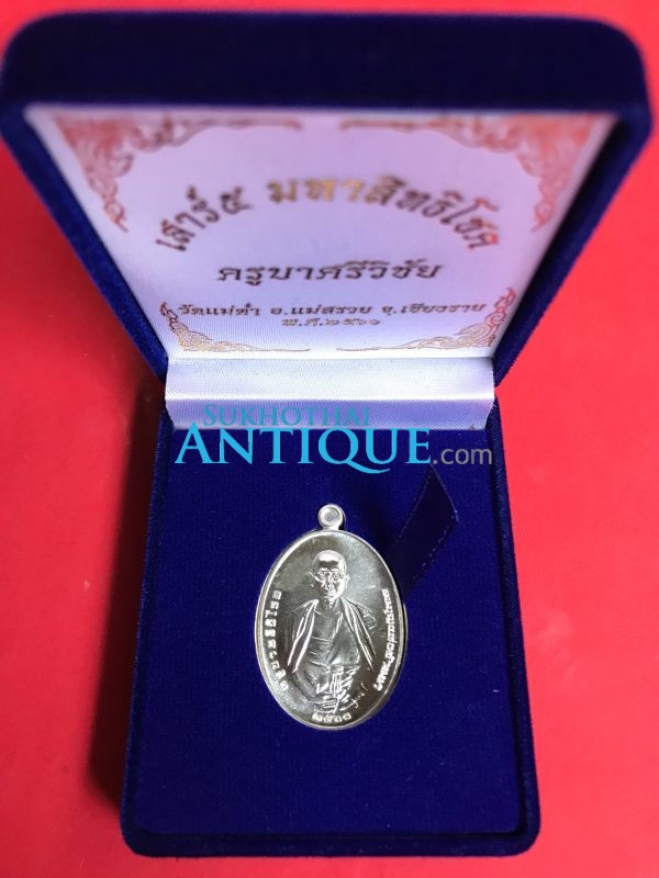 เหรียญครูบาศรีวิชัยเนื้อเงินรุ่นเสาร์มหาสิทธิโชค วัดแม่ตํ๋า อ.แม่สรวย จ.เชียงราย พ.ศ.2560 จัดสร้างเพียง 99 เหรียญ