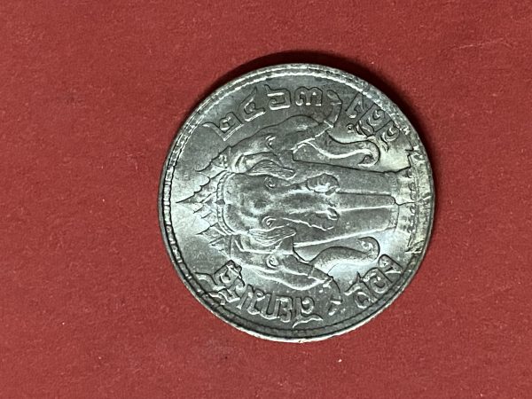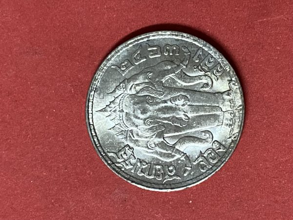 เหรียญช้างสามเศียรหนึ่งสลึง ร.6 เนื้อเงิน ปี 2467 หูตาคมชัดทั้งหัวและก้อยกะไหล่เงินเดิม