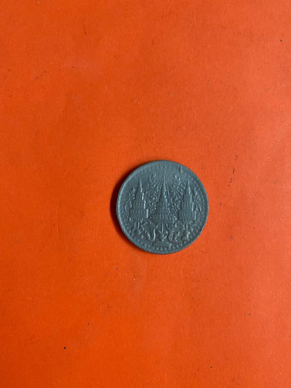 เหรียญดีบุกพระมงกุฎ – พระแสงจักร อัฐ หรือ 1/8 Fuang พ.ศ.2405 ช้างใหญ่ ขนาดสผ. 29.00 มม.สภาพสายงาม