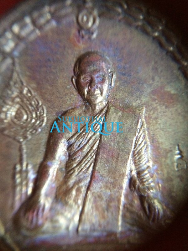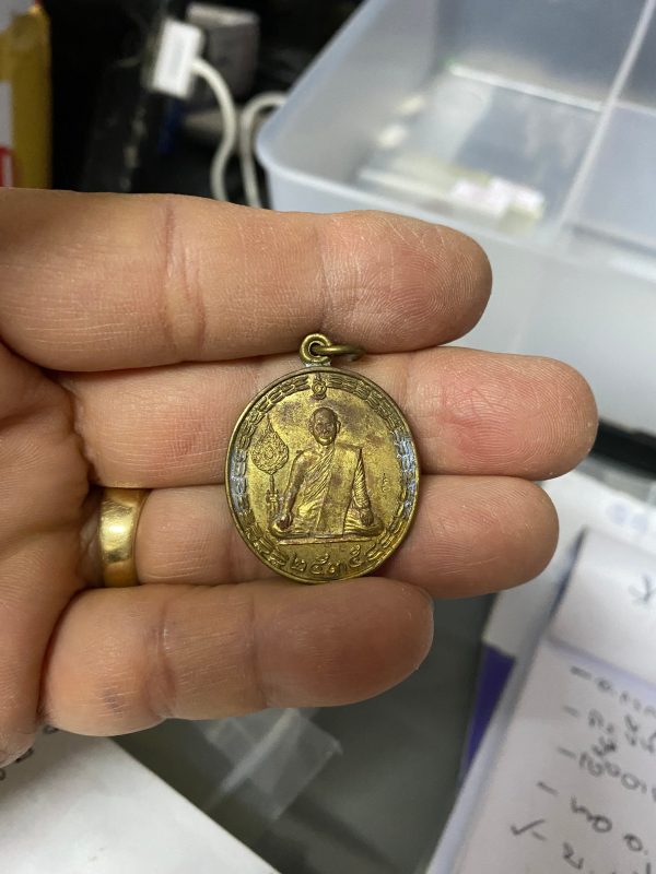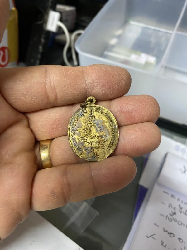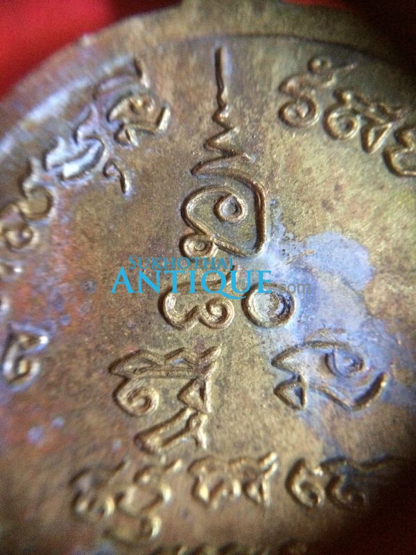 เหรียญทองแดงกะไหล่ทองหลวงพ่อมาลัย ปี 2535 ด้านหน้าต็อกโค๊ตหลังมียันต์และเลข 80