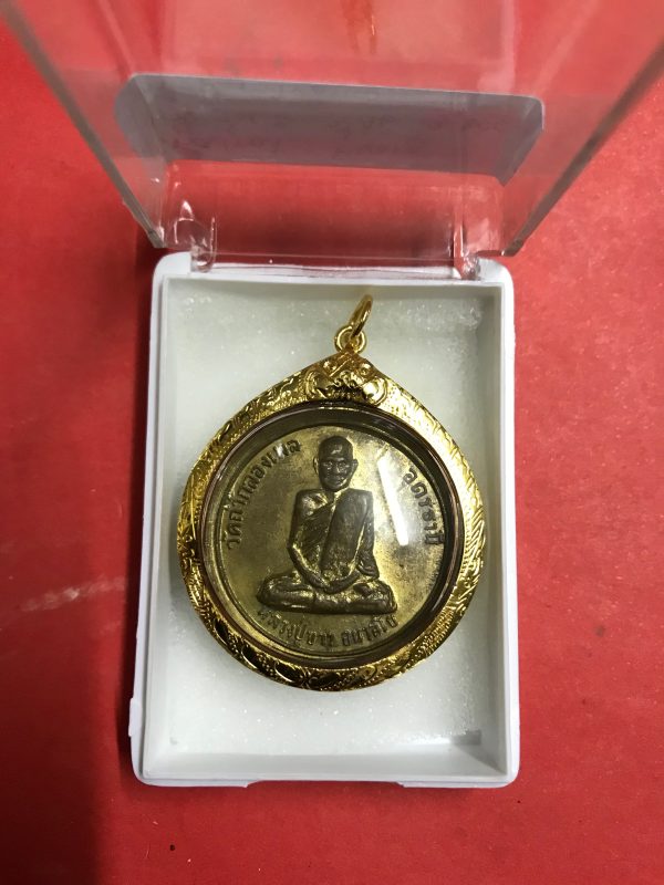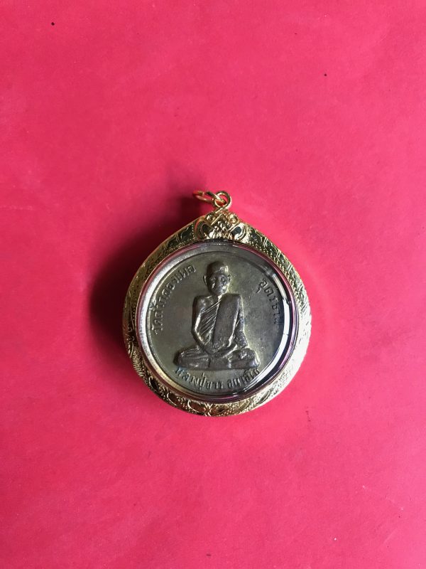 เหรียญทองแดงกะไหล่ทอง หลวงปู่ขาว อนาลโย วัดถํ้ากลองเพล อ.หัวตะพาน จ.อุดรธานี ปี16 เลี่ยมทองสวยงาม