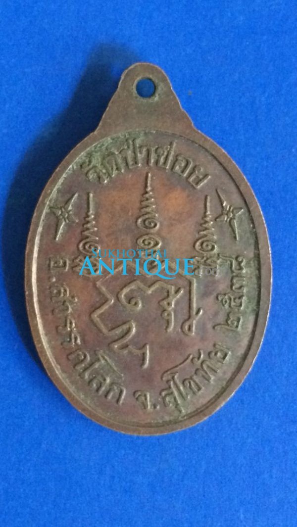 เหรียญทองแดงรูปไข่พระครูจันทโรภาส(หลวงพ่อจันทร์) วัดป่าข่อย อ.สวรรคโลก จ.สุโขทัย ปี พ.ศ.2538