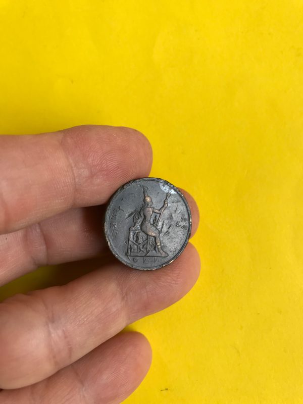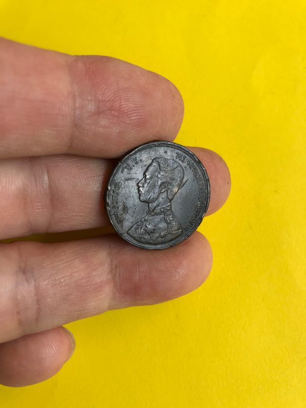 เหรียญทองแดง 1 อัฐ ร.ศ.122 สมัยรัชกาลที่ 5 หน้าตรงพระบรมรูป – พระสยามเทวาธิราช สภาพเดิมๆ (หัวก้อยตรง )