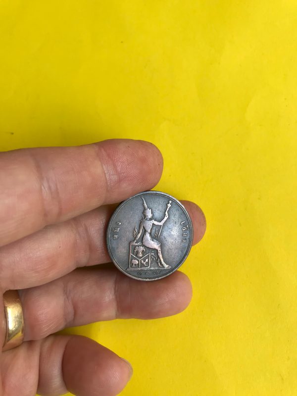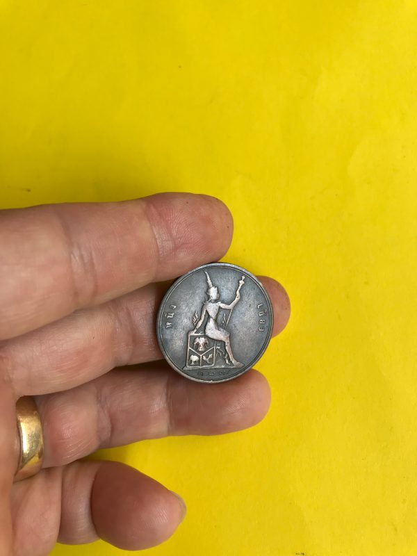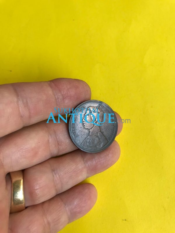 เหรียญทองแดง 1 เซี้ยว ร.ศ.109 สมัยรัชกาลที่ 5 หน้าตรงพระบรมรูป – พระสยามเทวาธิราช สภาพสวยงามสมบูรณ์ (หัวก้อยตรง )
