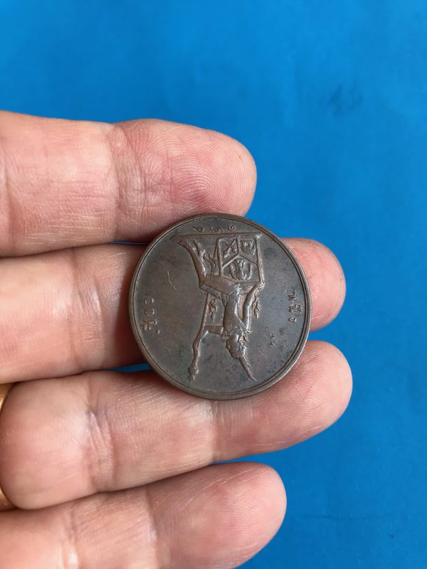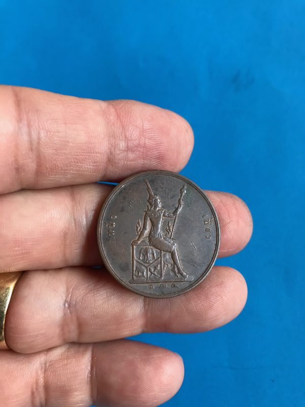 เหรียญทองแดง 1 เซี้ยว ร.ศ.124 สมัยรัชกาลที่ 5 หน้าหลัง-ตรง พระบรมรูป – พระสยามเทวาธิราช สภาพสวยงามสมบูรณ์มีผิวรุ้งเดิมโชว์ให้เห็น