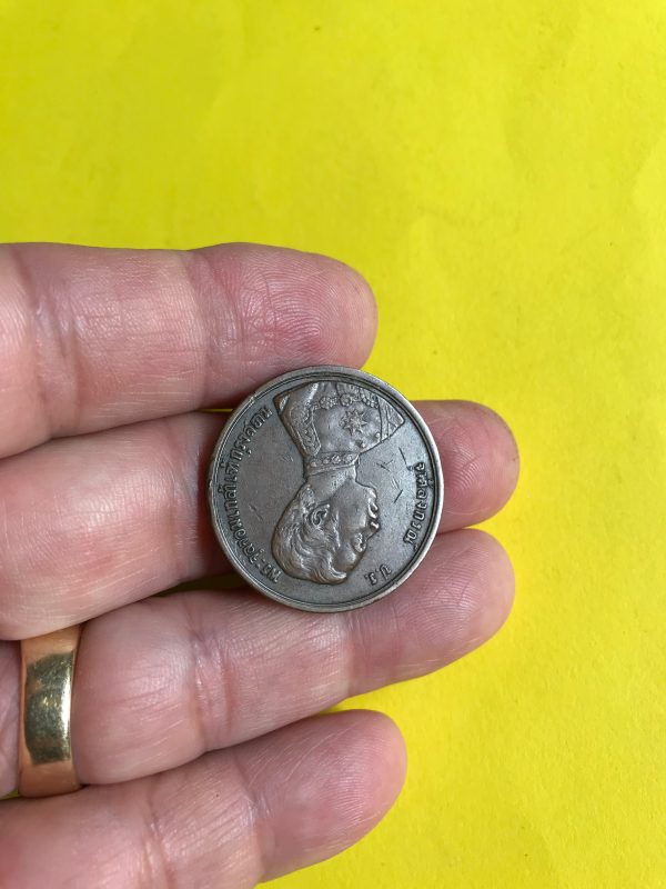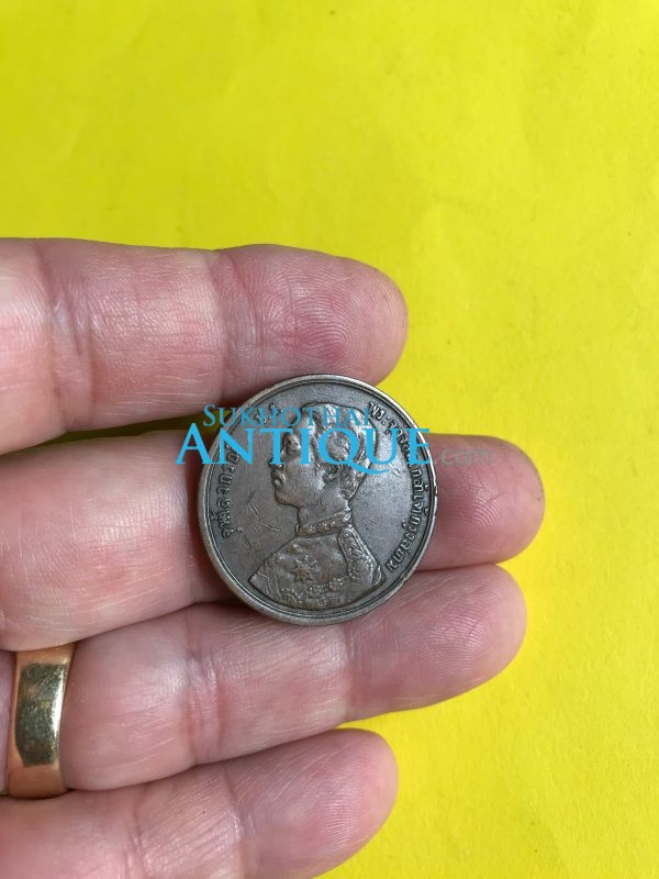 เหรียญทองแดง 1 เซี้ยว ร.ศ.124 สมัยรัชกาลที่ 5 หน้าหลัง-ตรง พระบรมรูป – พระสยามเทวาธิราช สภาพสวยงามสมบูรณ์