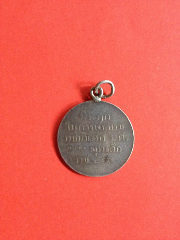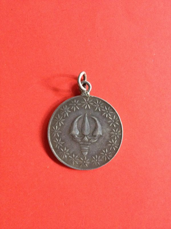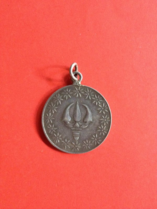 เหรียญที่ระฤกในการบรมราภิเษ( ตราสามง่าม )ในรัชกาลที่ 6 เนื้อเงินห่วงเชื่อม ร.ศ.130 พ.ศ.2454 ผ่านพิธีพุทธาภิเศกจากเกจิดังสมัยนั้น