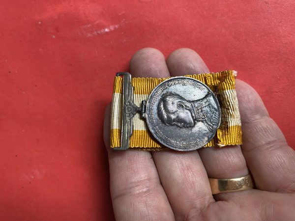 เหรียญที่ระลึกเนื้อเงิน เนื่องในพระราชพิธิสถาปนาสมเด็จพระบรมโอรสาธิราช 28 ธันวาคม 2515 พร้อมแพรแถบเดิมๆสวยงาม ช.