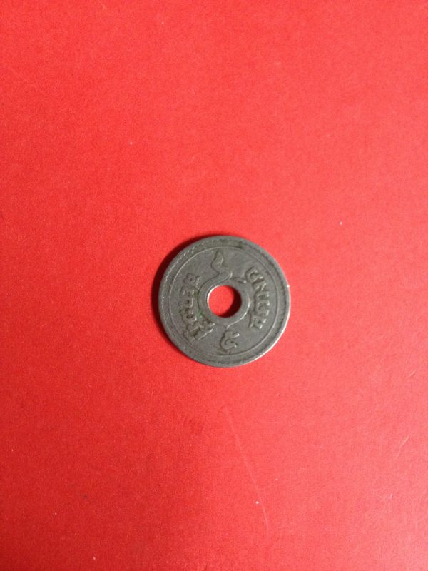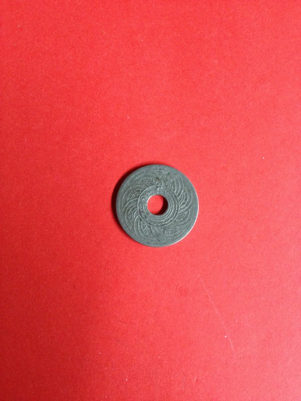 เหรียญนิเกิลตราอุณาโลม – พระแสงจักร 5 สตางค์มีรูกลาง ร.ศ.129 สมัย ร.5 สวยงาม
