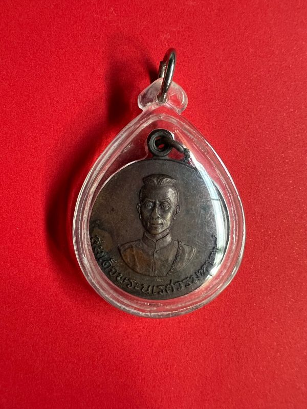 เหรียญปั้มกลมสมเด็จพระนเรศวรมหาราช หลังพระขุนแผน เนื้อทองแดงพิมพ์ใหญ่ ปี2524 หลวงปู่ดุลย์เป็นพระประธานปลุกเสก