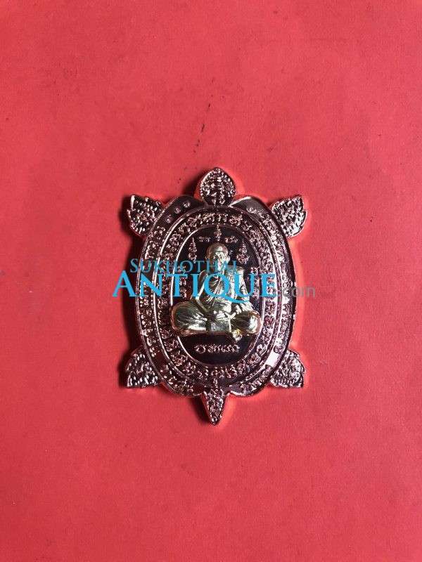 เหรียญพญาเต่าเรือน หลวงปูแสน รวยเงิน รวยทอง หน้ากากทอง ตอกโค๊ต 946 พร้อมตลับเดิม