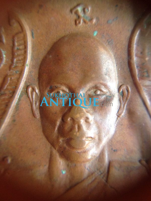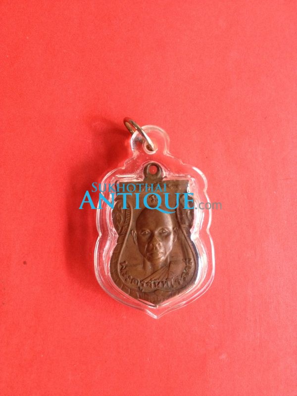 เหรียญพระครูจันทโรภาส วัดป่าข่อย สุโขทัย เนื้อทองแดงรุ่น 1 (หน้าหนุ่มเลี่ยมกรอบพลาสติก)