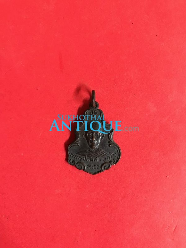 เหรียญพระครูปลัดสด วัดอัมพวนาราม อ.สวรรคโลก จ.สุโขทัย เนื้อทองแดง ปี 2503