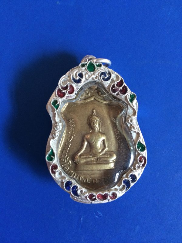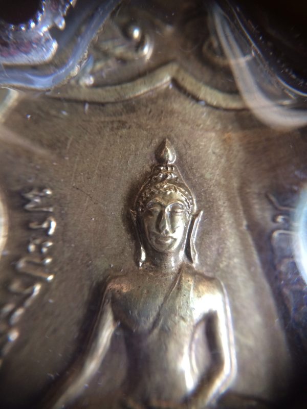 เหรียญพระประธานวัดโคกเมรุเนื้อทองฝาบาตร อ.ฉวาง จ.นตรศรีธรรมราช เลี่ยมเงินโบราณ