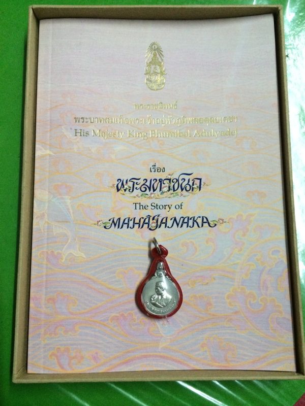 เหรียญพระมหาชนกเนื้อเงินพิมพ์เล็ก พร้อมกล่องและหนังสือ