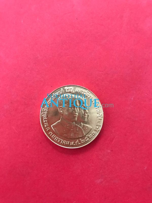 เหรียญพระราชพิธิอภิเษกสมรส มหาวชิราลงกรณ์ – โสมสวลี เนื่อทองคำ วันที่ 3 มกราคม 2520 หลัง ตรา มวก. หน้าเหรียญ 2500 บาท