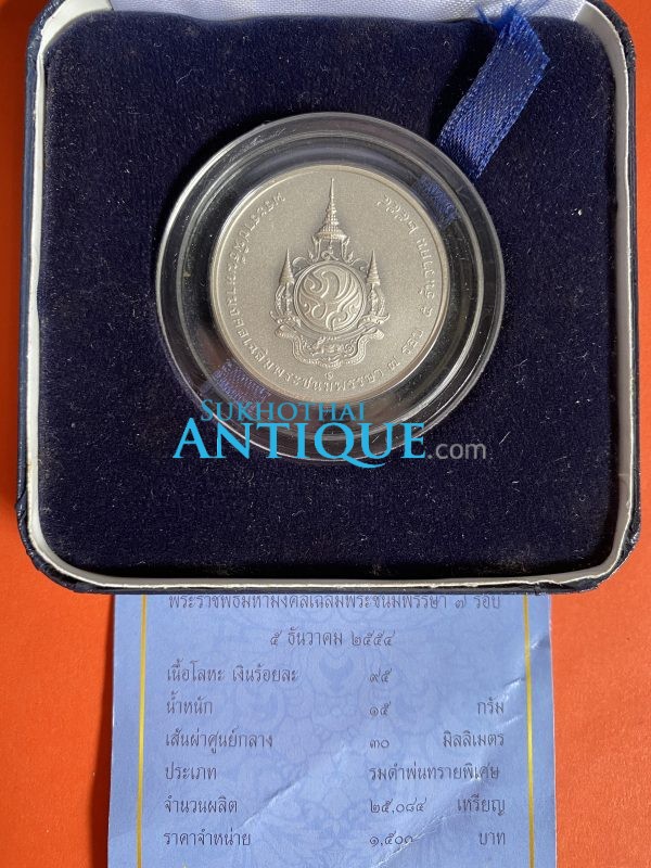 เหรียญพระราชพิธีมหามงคลเฉลิมพระชนมพรรษา 7 รอบ เนื้อเงินพ่นทราย 5 ธันวาคม 2554 พร้อมกล่องและใบ