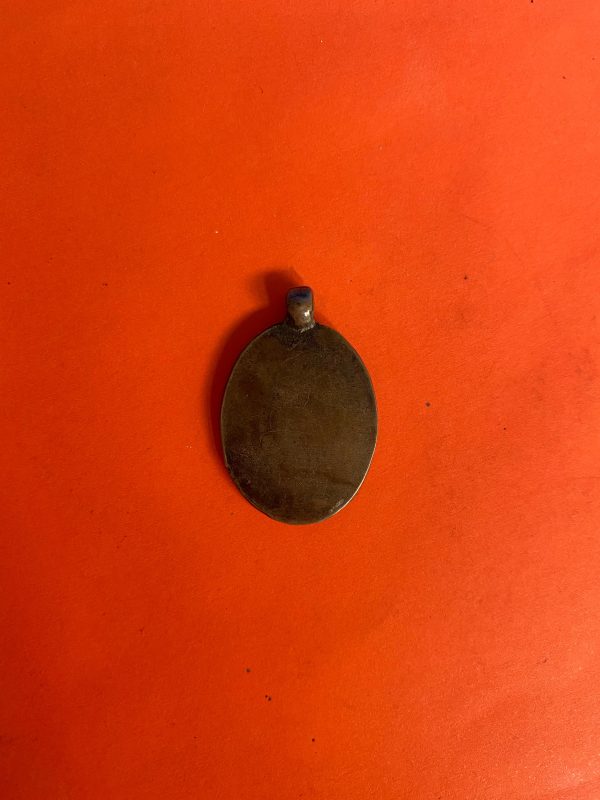 เหรียญรูปไข่ หลวงปู่ไข่วัดเชิงเลน ( วัดบพิตรพิมุข )เนื้อทองแดงห่วงเชื่อม ด้านหลังมียันต์เขียน