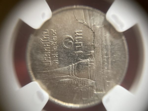เหรียญหนึ่งบาทเล็กรุ่นแรกหายากปี 2529 เนื้อนิเกิล ช่่อฟ้าสั้น ส่งคัดเกรด