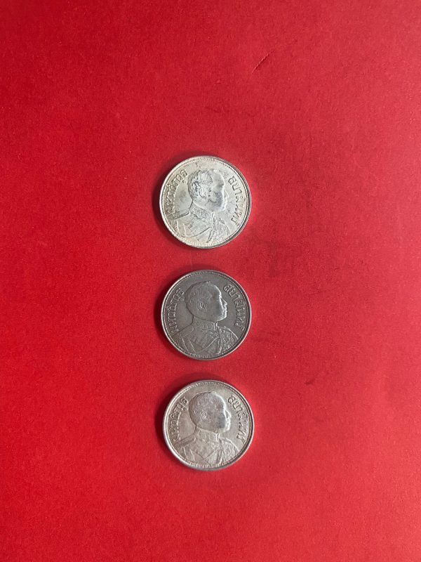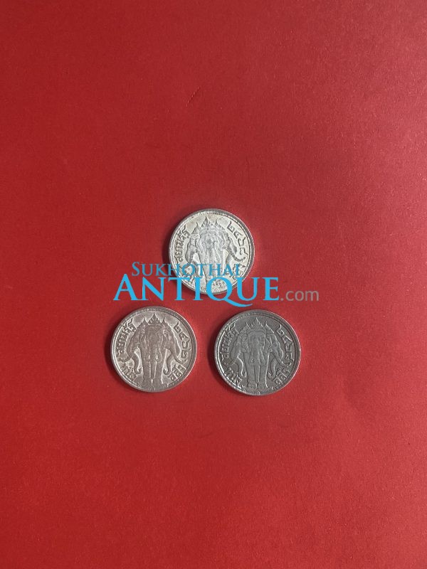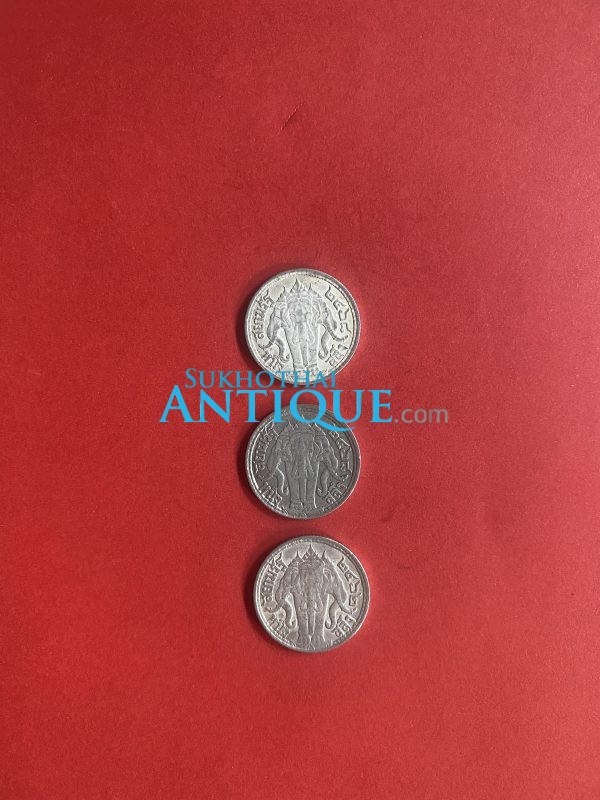 เหรียญหนึ่งสลึงช้างสามเศียรเนื้อเงินสมัย ร.6 ปี พ.ศ.2462 (1เหรียญ) และ2468 (2เหรียญ) จำนวน 3 เหรียญสวยงามคมชัดเดิม