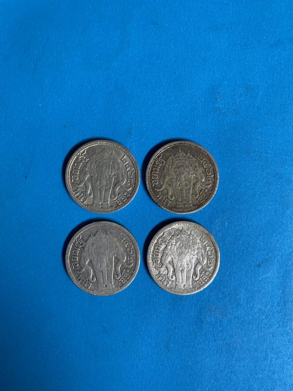 เหรียญหนึ่งสลึงช้างสามเศียรเนื้อเงินสมัย ร.6 ปี พ.ศ.2462 (3เหรียญ) และ2468 (1เหรียญ) จำนวน 4 เหรียญสวยงามคมชัดมากๆ