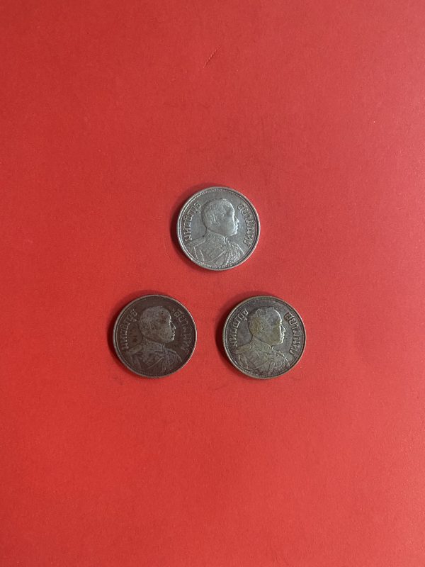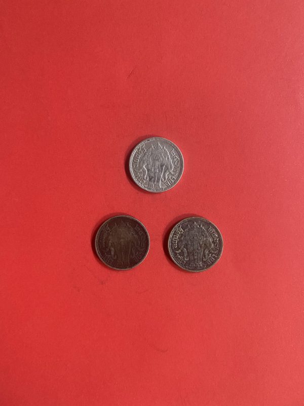 เหรียญหนึ่งสลึงช้างสามเศียรเนื้อเงินสมัย ร.6 ปี พ.ศ.2462 (2เหรียญ) และ2467 (1เหรียญ) จำนวน 3 เหรียญสวยงามคมชัดเดิม