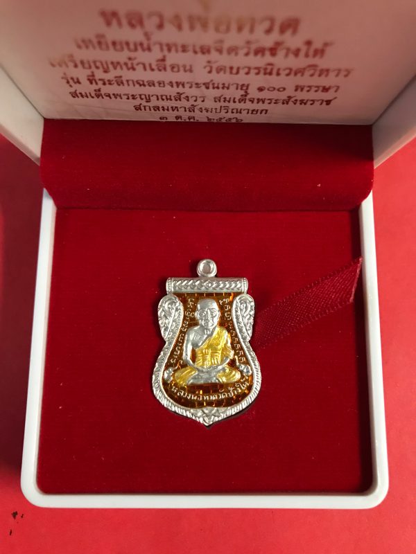 เหรียญหลวงปู่ทวด วัดช้างให้ หน้าเลื่อนวัดบวรนิเวศวิหาร รุ่นที่ระลึกฉลองพระชนมายุ 100 พรรษา 3 ต.ค.56 เนื้อเงิน ตอกโค๊ต 24