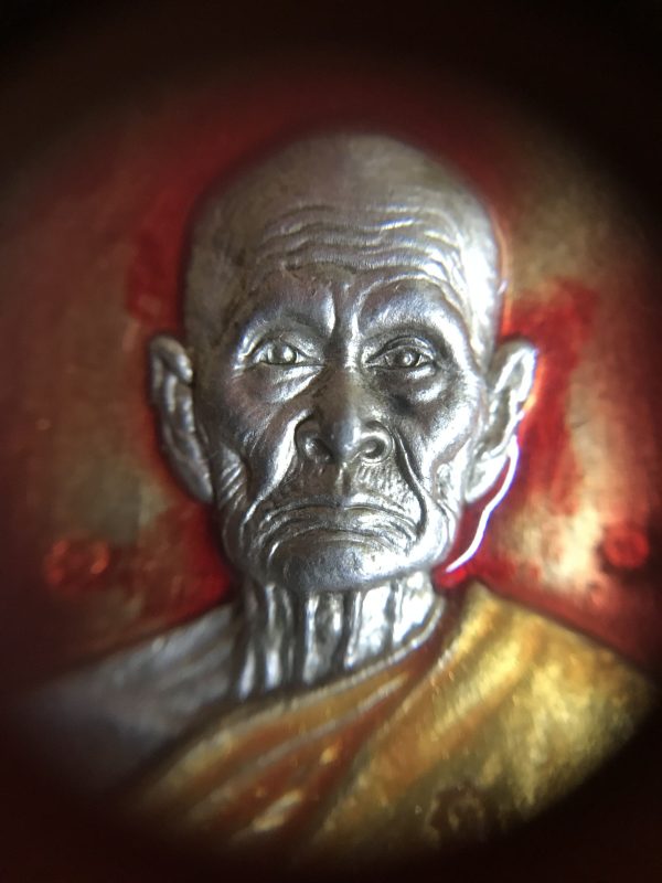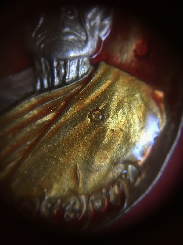 เหรียญหลวงพ่อทบ ฉลองครบรอบ 81 พรรษา เมื่ออายุ 94 ปี 23 ก.ค. 2518 เนื้อเงินลงสีส้ม ตอก 3 โค็ต