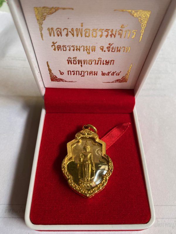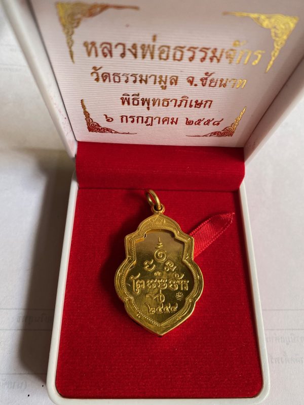 เหรียญหลวงพ่อธรรมจักรหลังหลวงปู่ศุขปี 2558 เนื้อทองคำ เลี่ยมทองคำกันนำ้นำ้หนัก23กรัม ตอกโค๊ตเลข 72 รวมกันได้ 9 สวยงามมาก