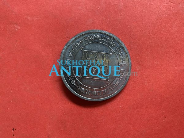 เหรียญหลวงพ่อรวย ปาสาทิโก วัดตะโก อยุธยา ฉลองครบรอบ 76 ปี หลังยันต์ เนื้อตะกั่ว ปีพ.ศ.2540