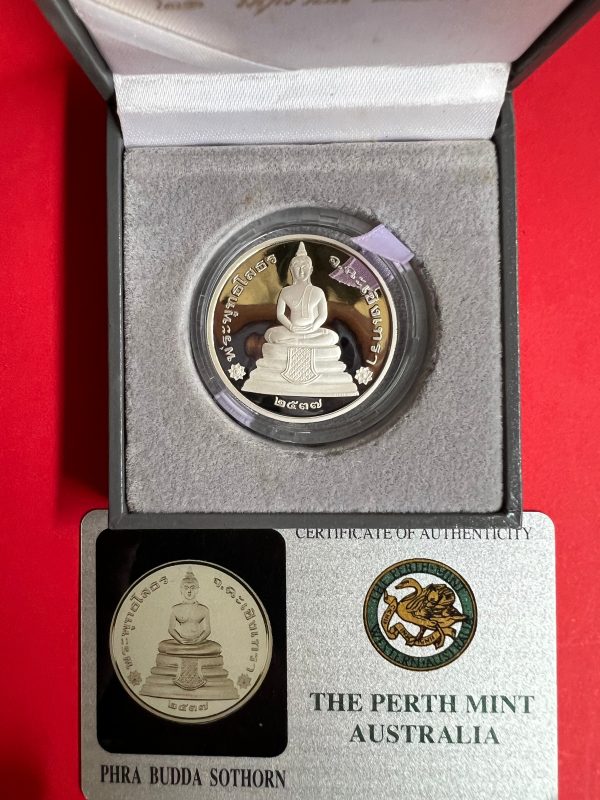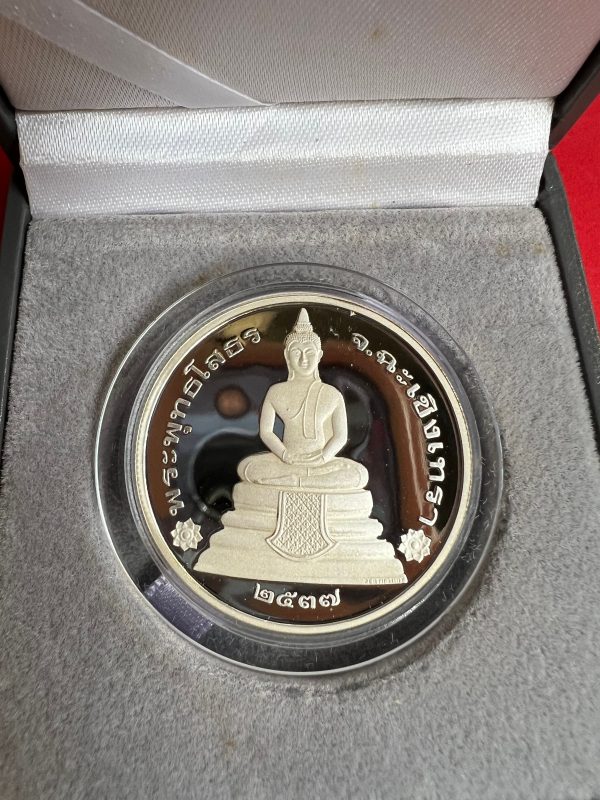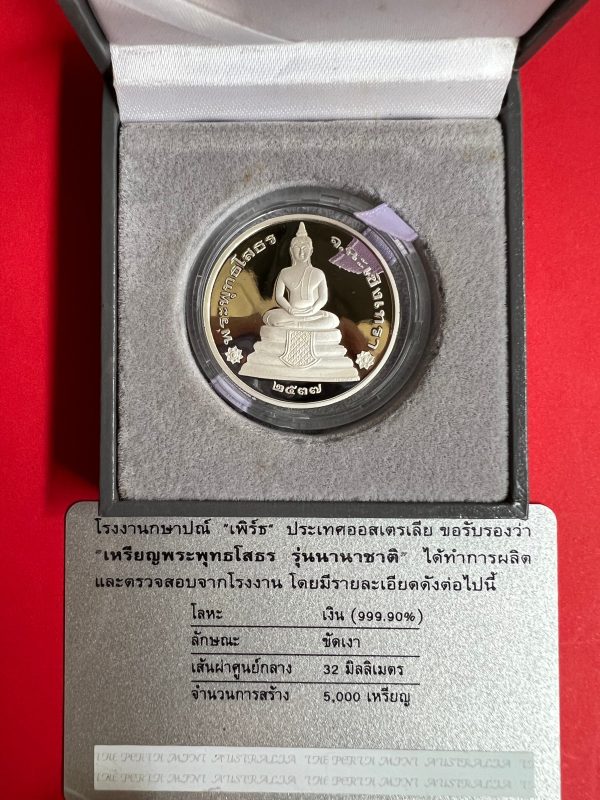 เหรียญหลวงพ่อโสธรสองหน้าเนื้อเงินขัดเงา 99.90% รุ่น1 ผลิต วันที่ 21 มิถุนายน 2537 ขนาด 32 มม. ผลิตจากโรงกษาปณ์”เพิร์ช”