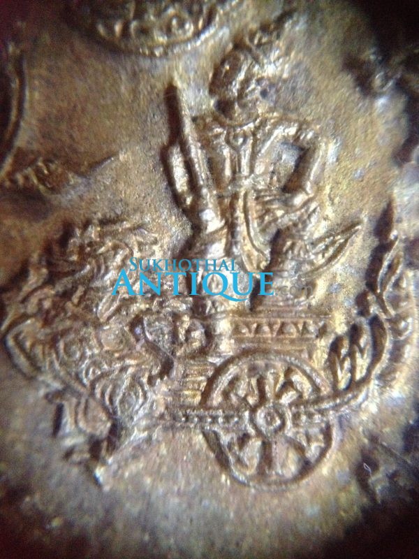ตลับทองเหลืองจีนโบราณ มีแกะสลักลวดลายรูปและภาษาจีน โดยรอบสวยงามสมบูรณ์