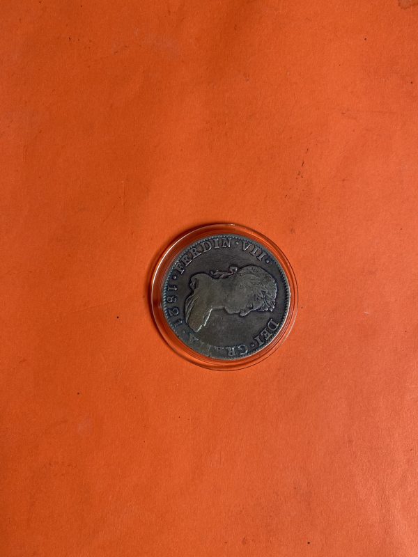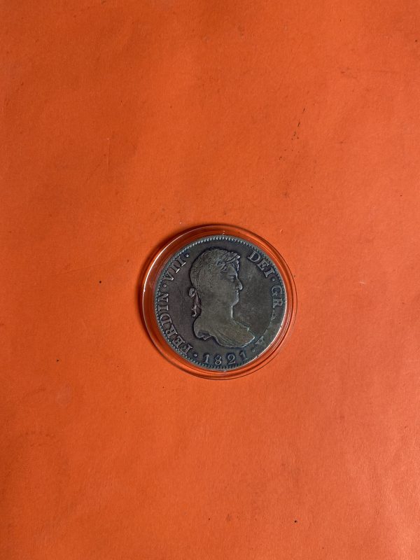 เหรียญเก่าเนื้อเงินของประเทศ SPAIN สมัย FERDIN VII สมัยปี1821 มูลค่า 8 R.J.J ตรงกับปลายสมัย ร.2 ( ปี2364 ) เก็บได้ผิวเดิมรุ้งสวยสมบูรณ์มากๆ