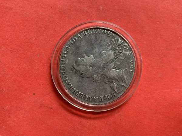 เหรียญเก่าเนื้อเงินประเทศ RUSSIA สมัยพระนาง CATHERINE II , ROUBLE ขอบเหรียญเกลียวเชือกปีค.ศ.1768 ตรงกับพ.ศ.2311