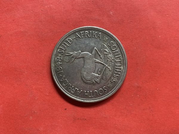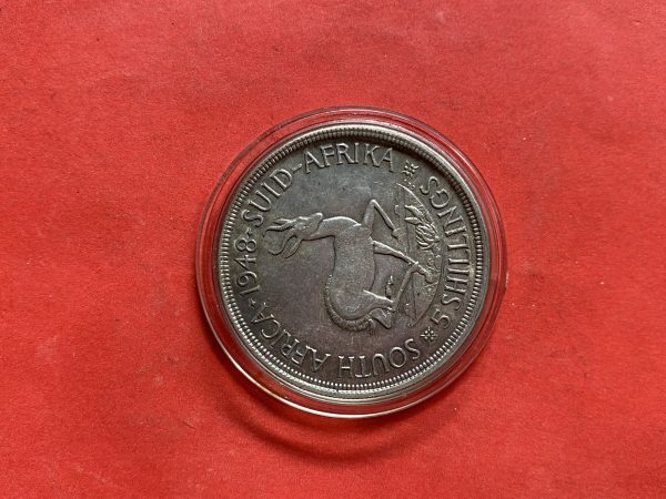 เหรียญเก่าเนื้อเงินประเทศ SOUTH AFRICA สมัย GEORG IVS ปีค.ศ.1948 มูลค่า 5 SHILLINGS ปลายสมัย ร.8 พ.ศ.2491 สวย