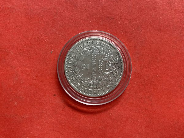 เหรียญเก่าเนื้อเงินประเทศ FRANCE สมัย THE THIRD REPUBLIC ปีค.ศ.1887 มูลค่า 2 Fance ตรงกับสมัย ร.5 พ.ศ.2430 สวยเดิม
