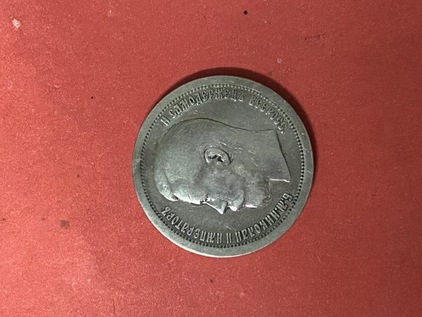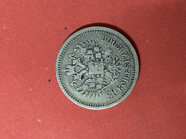 เหรียญเก่าเนื้อเงินประเทศ RUSSIA สมัยพระเจ้าซาร์นิโคลัสที่ 2 ราคา 50 Kopeks ปี 1896 ตรงกับ พ.ศ.2439 พระสหายรัชกาล 5