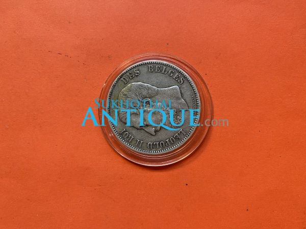 เหรียญเก่าเนื้อเงินประเทศเบลเยี่ยมสมัยพระเจ้า LEOPOLD II ROI ปี ค.ศ.1873 มูลค่า 5 France ตรงสมัย ร.5 พ.ศ.2416