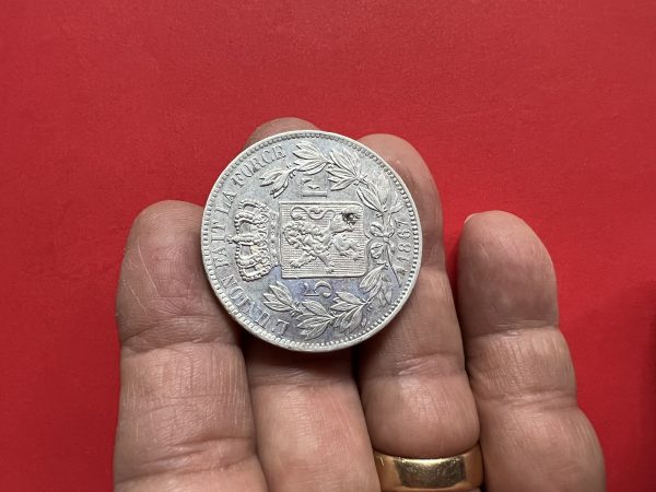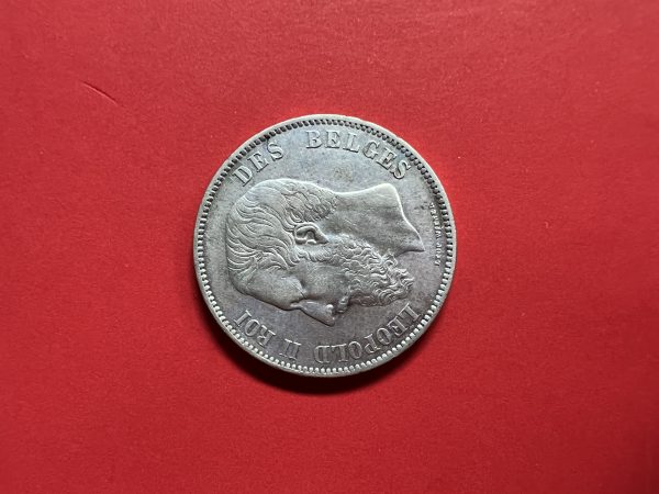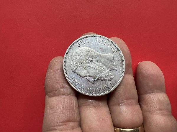 เหรียญเก่าเนื้อเงินประเทศเบลเยี่ยมสมัยพระเจ้า LEOPOLD II ROI ปี ค.ศ.1873 มูลค่า 5 France ตรงสมัย ร.5 พ.ศ.2416
