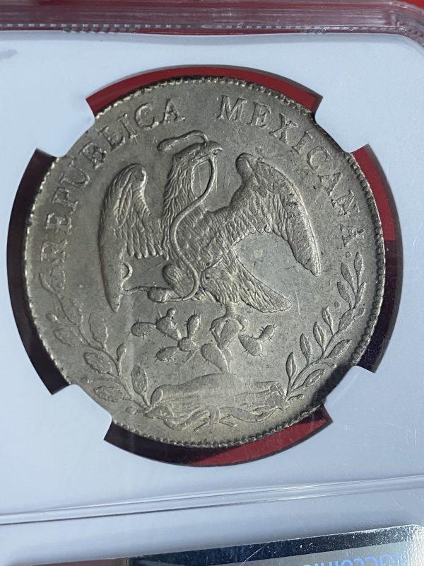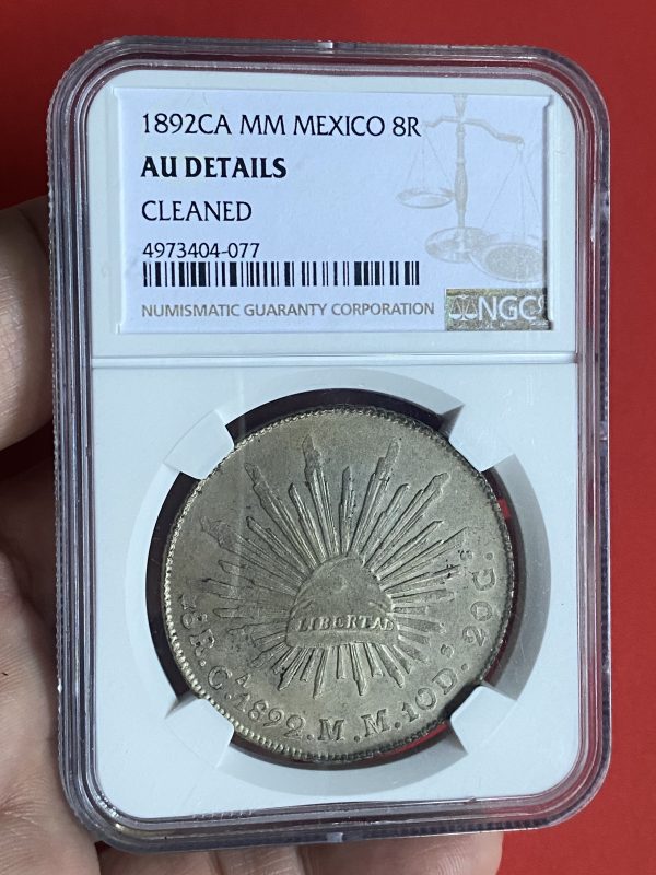 เหรียญเก่าเนื้อเงินประเทศ MEXICO 8R ปี ค.ศ. 1892 เป็นเหรียญที่ผ่านการออกเกรด เป็นเหรียญบล็อกยอดนิยม (ฟันหนู) สวยมาก