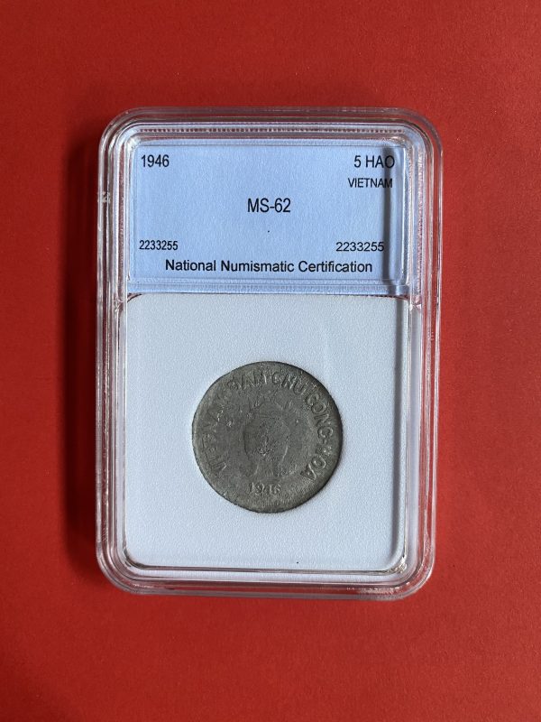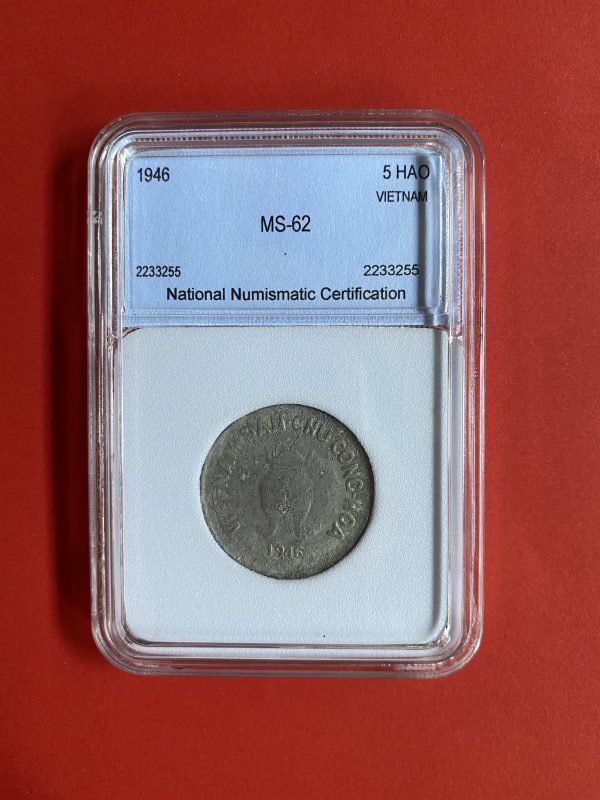 เหรียญเก่าเนื้อเงินประเทศ VIETNAM (เวียดนาม) สมัย DAM-CHUCONG-HOA ปี ค.ศ.1946 ราคา 5 HAO ออกเกรดเรียบร้อย